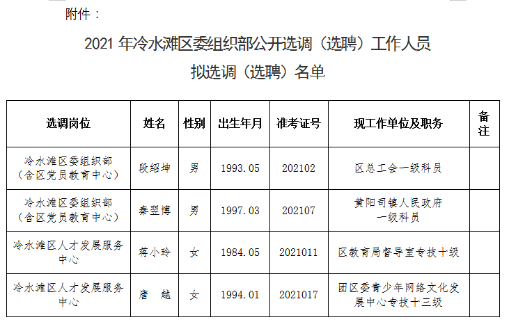 附件:2021年冷水灘區委組織部公開選調(選聘)工作人員擬選調(選聘)名單