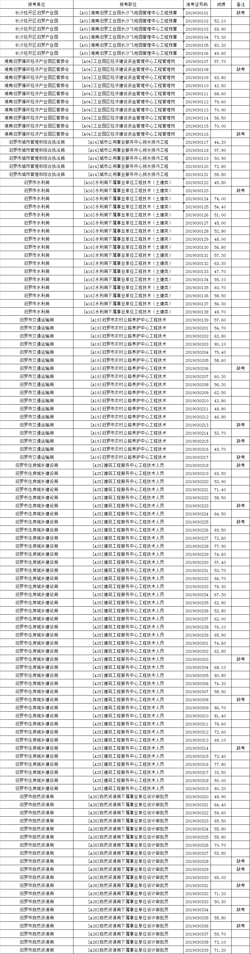 現將汨羅市2019年事業單位公開招聘工作人員筆試成績予以公布,考生如果對自己成績有疑問,請于10月10日上午12:00前,持本人身份證、準考證、申請查分報告,到市人社局409室人力資源服務中心申請查分。具體入圍面試名單和面試辦法將在公示期內予以公布,請及時關注。